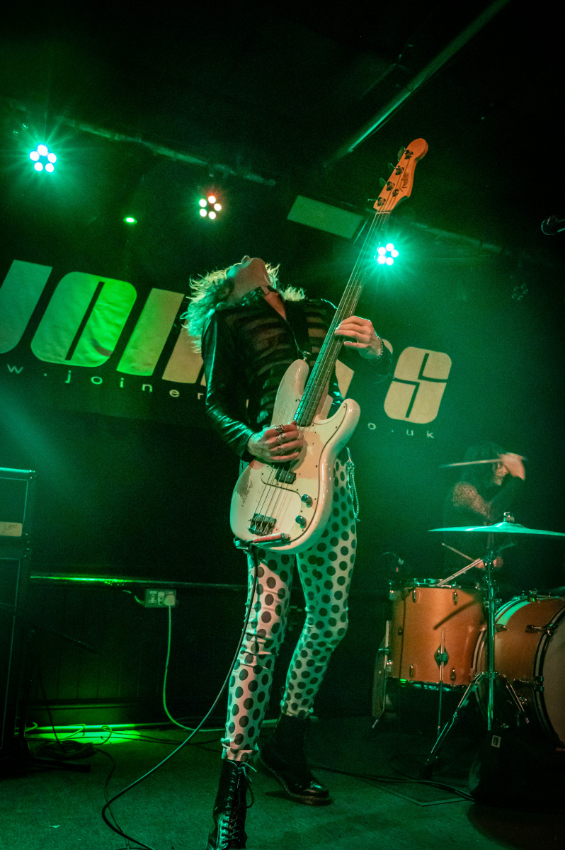 Starbenders take to the stage and they’re clearly not messing about. They open with Blood Moon, possibly the heaviest sounding track from the new album with its driving punk rhythm supplied by Emily Moon. She may look like a fragile flower behind the drumkit, but the way she’s hitting those drums Looks like she’s trying to murder them. This is then followed up by fan favourites Holy Mother and Bitches Be Witches with Kimi Shelter in full unholy communion mode, before we go into full goth mode with Marianne. Aaron Lecesne throws his bass around like he’s downed a dozen espresso shots before coming onstage, he’s more caffeinated than Popeye on spinach. Guitarist Kriss Tokaji may not be throwing himself around as much as the others but that doesn’t mean he’s not having fun either. It’s like the slowest striptease ever as his shirt goes from buttoned, to unbuttoned, before finally losing his shirt altogether by the end of the show. There’s a surprise for the fans, one of them is audibly excited, as Blood is played. Apparently it’s the first time it’s been played on the tour. It’s testament to how well the album has done that the majority are singing along, the tunes are catchy and the lyrics easy to pickup if you’re not familiar with them. There’s time for one last oldie before the set is finished off with another three songs from the new album. They go down a storm, and are arguably three of the best tracks on the album, The Game, Sex, and a personal favourite, If You Need It. All in all it’s a Sunday night well spent, two great bands, some great music, and not a note out of place. It’s a testament to the venue as well that the sound was spot on. Starbenders looked and sounded like they were in a much bigger venue, and they absolutely deserve to be. Hopefully next year we’ll see some festival slots added to their touring schedule as well as a much bigger tour.